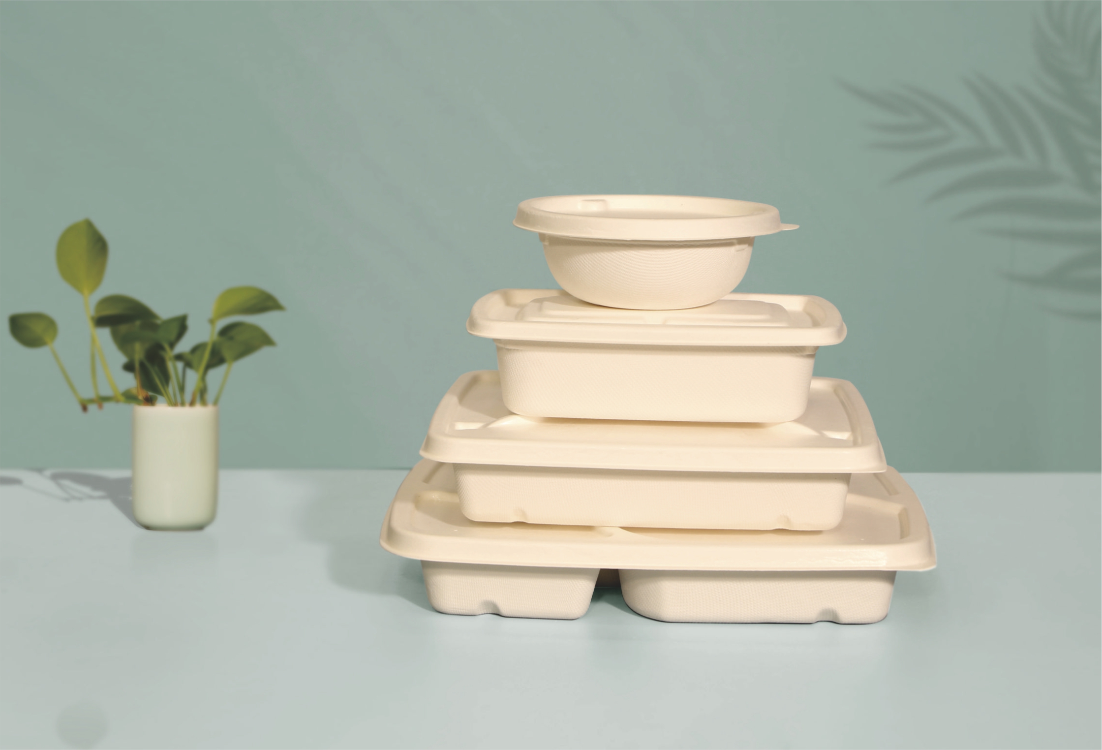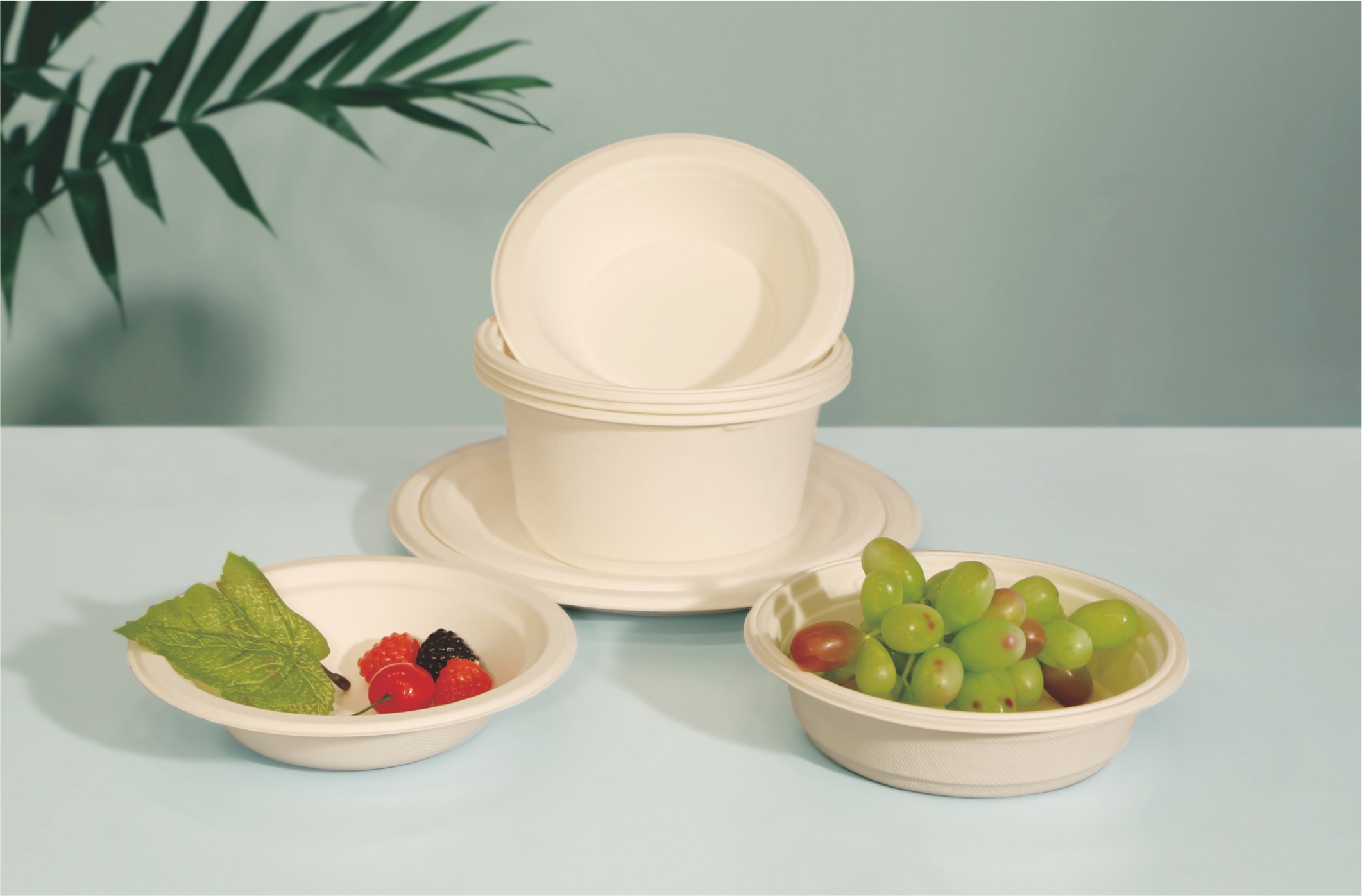公司秉承 “用科技回報自然”的理念,推出以甘蔗漿、秸稈漿、PLA、PBAT等為原料的全生物降解制品